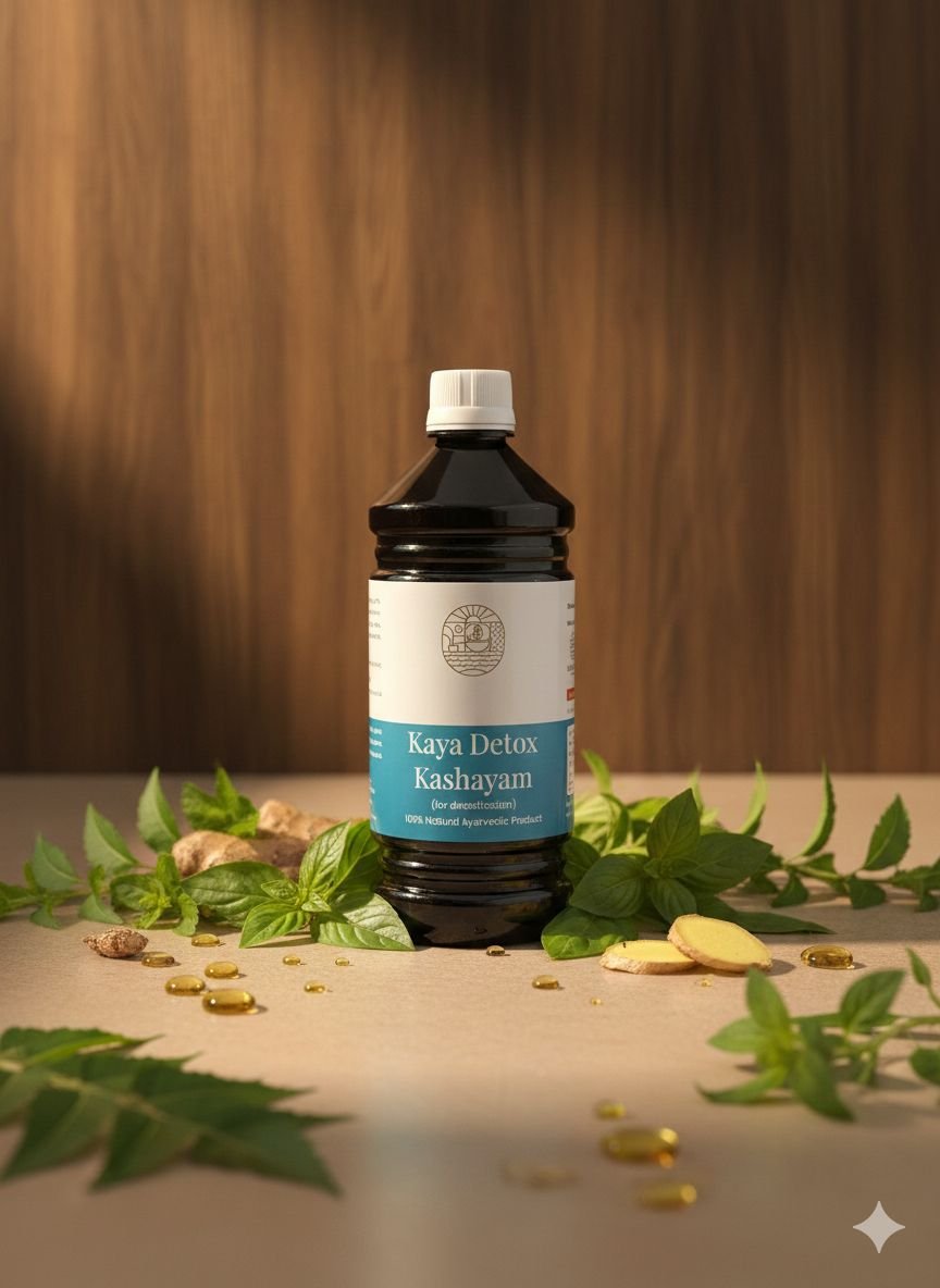 Product Description: Kaya Detox Kashayam is an Ayurvedic herbal decoction formulated to support the body’s natural detoxification processes, improve digestion, and restore metabolic balance. Instead of harsh cleansing methods, Kaya Detox works subtly—helping the system eliminate accumulated toxins (ama) while supporting liver, gut, and metabolic health.
